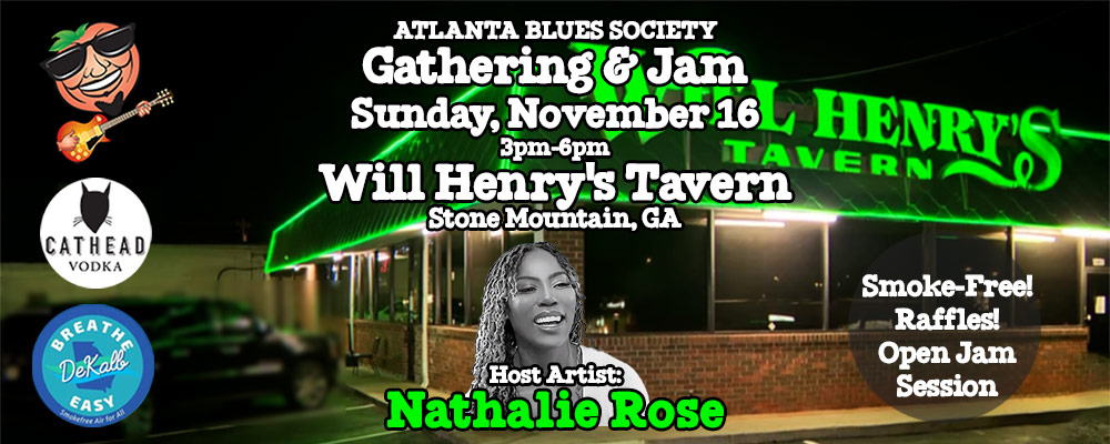 Our next Gathering & Jam will be on Sunday, November 16, 2025 from 3pm-6pm at Will Henry’s Tavern Rockbridge in Stone Mountain, Georgia. Our host band is the Nathalie Rose Band.