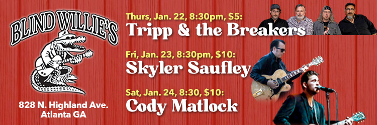 Thurs, Jan 22, Blind Willie’s, Atlanta, 8:30pm, $5