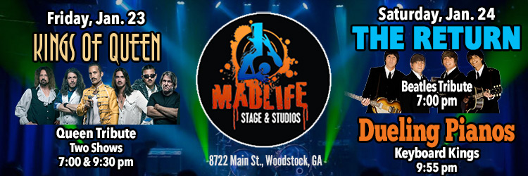 The Return, Beatles Tribute, 7pm; Dueling Pianos, 9:55pm– MadLife, Woodstock