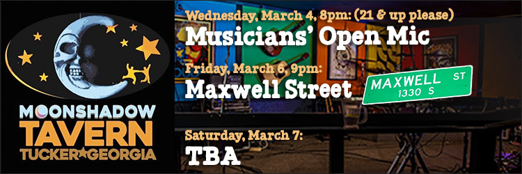 Sun, Mar 8, Moon Jam, MoonShadow, Tavern, Tucker, 8pm-11pm