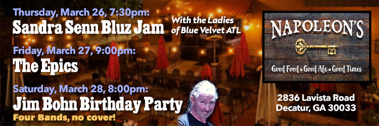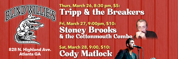 Thurs, Mar 26, Blind Willie’s, Atlanta, 8:30pm,$5