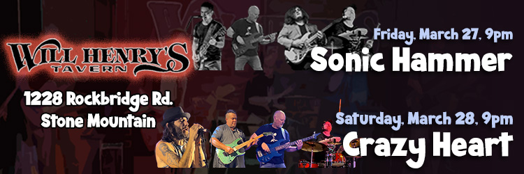Sonic Hammer, 9pm – Will Henry’s Tavern Rockbridge, Stone Mountain