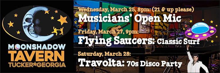 Sun, Mar 29, Moon Jam, MoonShadow, Tavern, Tucker, 8pm-11pm