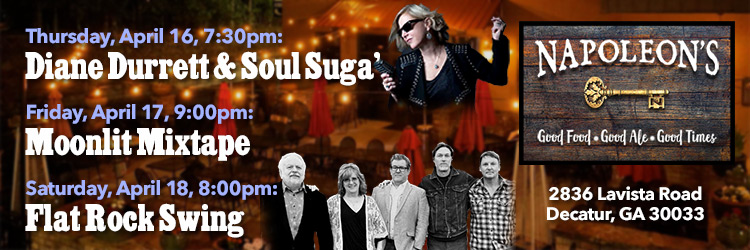 Diane Durrett & Soul Suga’, Spring Fling, 7:30pm – Napoleon’s, Decatur