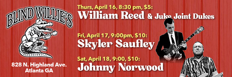 William Reed & the Juke Joint Dukes, 8:30pm – Blind Willie’s, VA Highlands, Atlanta