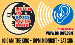 Listen to Blues After Dark on 1010 AM The King, Saturdays & Sundays, 10pm-Midnight. Also listen on the internet at www.dr-love.com. You can also download the “TuneIn” app and listen on your smart phone. We are always looking for artists to perform all types of music on Love Radio, or be posted on our site.